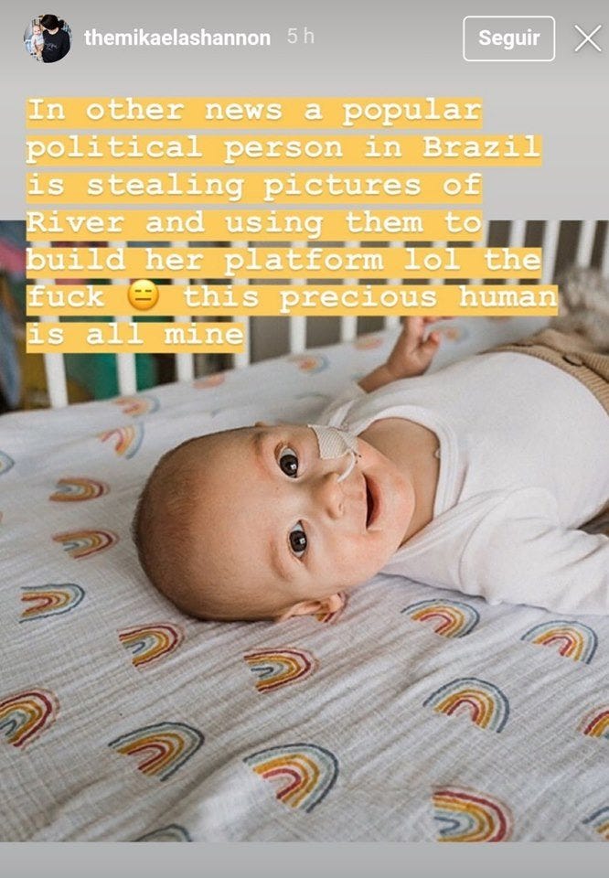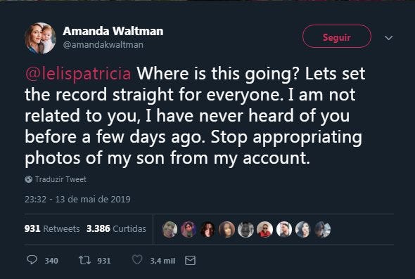 A discussão se intensificou quando usuários do Twitter analisaram os metadados de imagens que Patrícia havia publicado de seu bebê recém nascido e descobriram estas haviam sido copiadas de redes sociais de outras mães. E eram fotos pelo menos três bebês diferentes, como se fossem de um mesmo “filho”. Uma das imagens — a mais difundida — pertencia a uma mulher americana, que denunciou em suas redes sociais, o uso indevido da foto de seu bebê, que havia nascido prematuro.