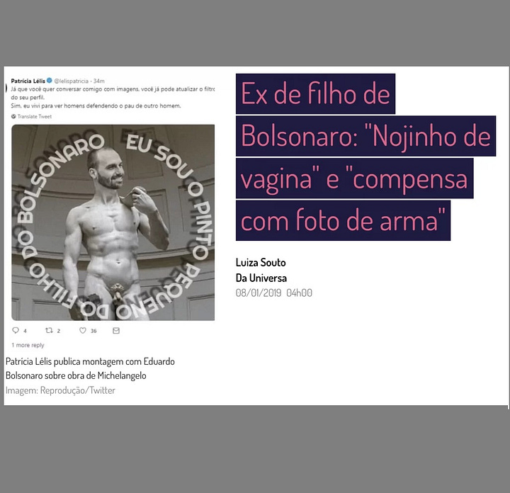 Mesmo sem comprovação, a imprensa — especialmente veículos alinhados à esquerda — tratou o relacionamento como fato consumado e explorou o caso para constranger politicamente o deputado. Durante a repercussão, Patrícia chegou a ironizá-lo nas redes, afirmando que Eduardo teria “pênis pequeno” — frase que viralizou e foi amplamente reproduzida por páginas e influenciadores opositores da família Bolsonaro.