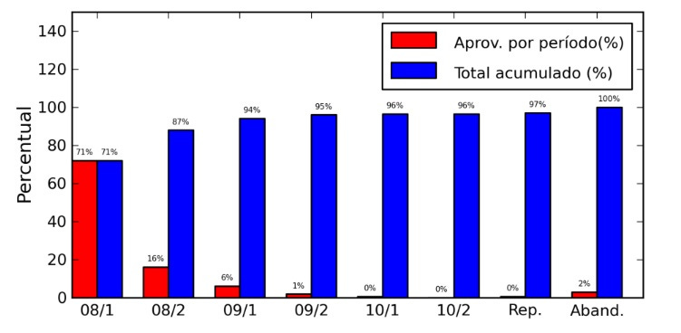O gráfico a seguir mostra as aprovações em Cálculo I ao longo dos semestres apresentado no texto: