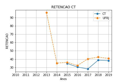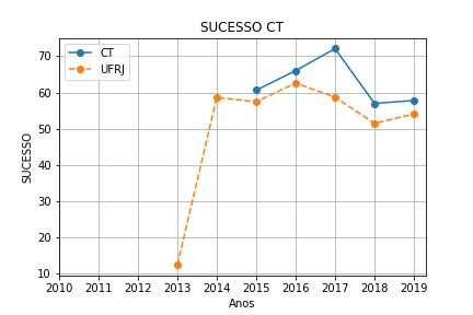 E em maio desse ano, A Pró-Reitoria de Graduação da UFRJ, divulgou internamente um estudo com o desempenho dos alunos da universidade, estratificado por sexo, etnia, curso etc. Curiosamente, os gráficos indicaram que a curva de desempenho tem comportamento muito similar entre os alunos do Centro de Tecnologia (CT) – que compreende a Escola Politécnica e a Escola de Química – e a UFRJ como um todo: