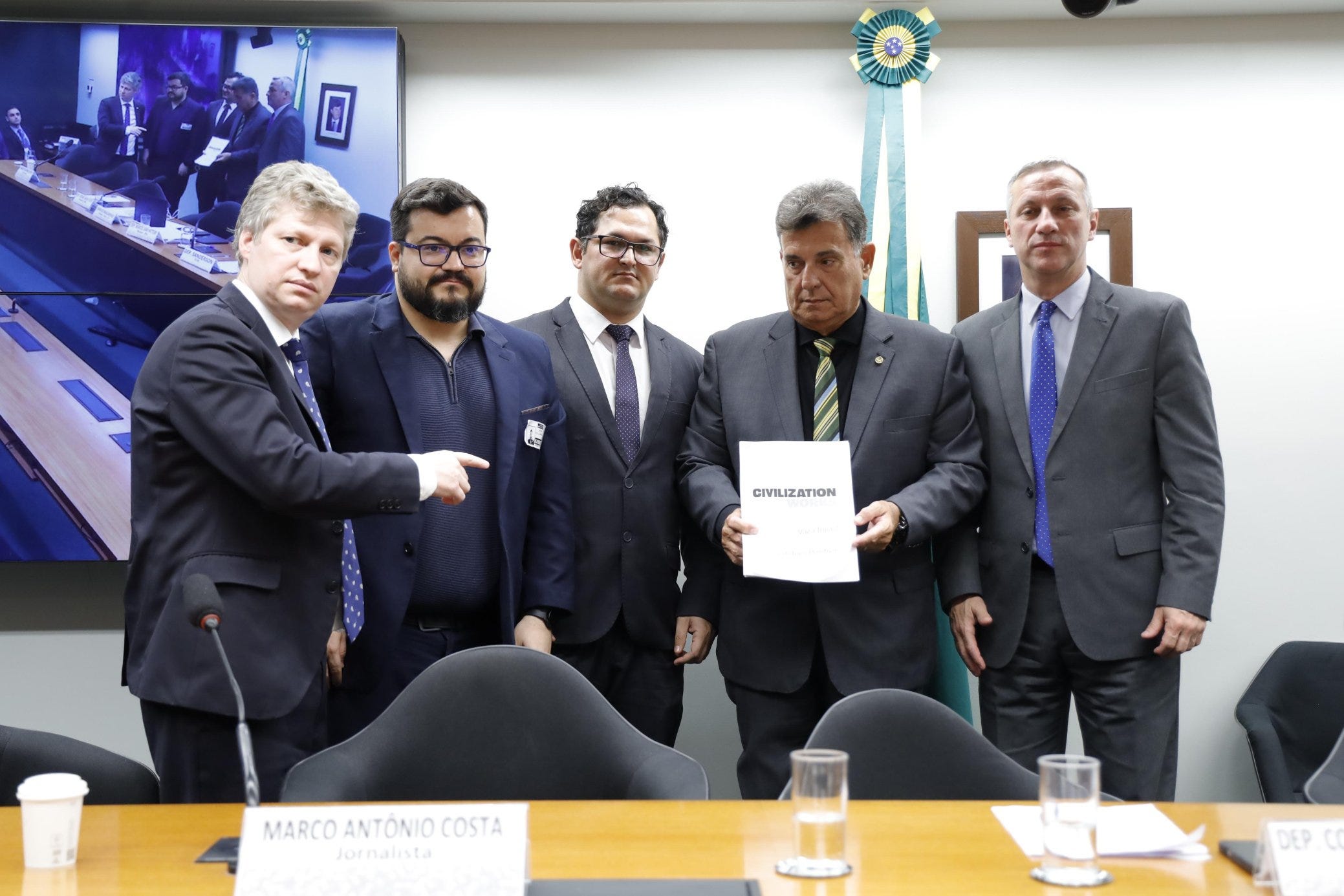 Durante a audiência, eu e Eli Vieira entregamos ao presidente da comissão, deputado Coronel Meira (PL-PE), as certidões originais e integrais da Vaza Toga 2.